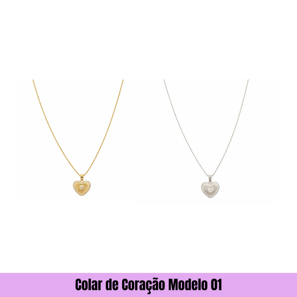 Delicado e cheio de charme, o colar com pingente de coração é a escolha perfeita para quem ama acessórios com significado. Disponível nas versões dourada e prateada, o pingente apresenta um design trabalhado com textura radial e um detalhe central em formato de coração, trazendo brilho e sofisticação na medida certa.