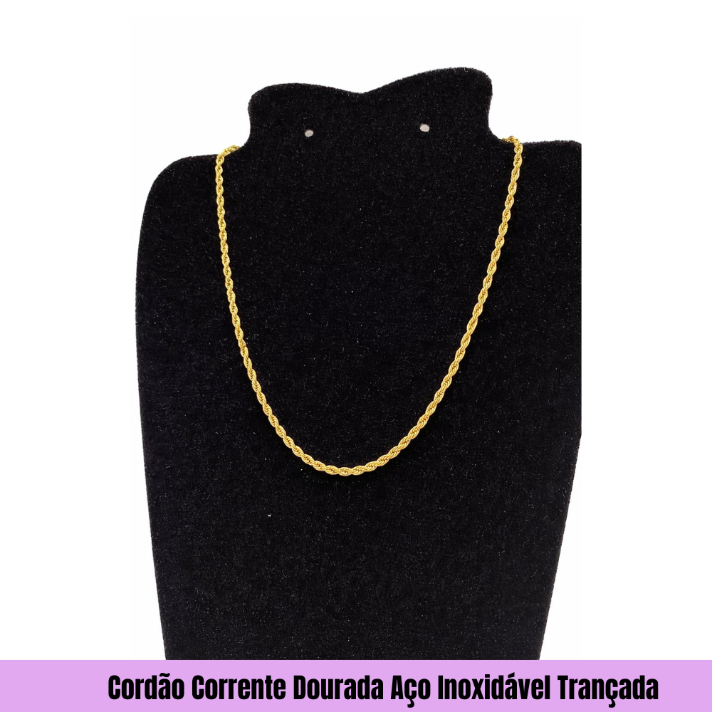 Aposte na sofisticação com a corrente dourada trançada, uma peça versátil que combina com qualquer estilo. Seu design em trama delicada proporciona um brilho elegante e um acabamento refinado, ideal para quem busca um acessório discreto, mas marcante.