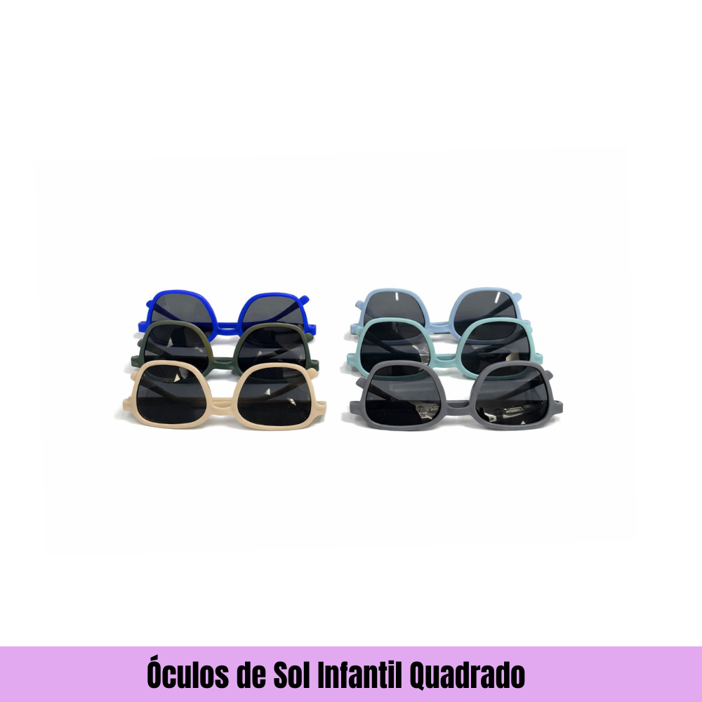 Estilo, conforto e proteção para os pequenos! Esses óculos de sol infantis com formato quadrado são modernos e ideais para acompanhar as crianças em passeios, viagens e dias de sol.