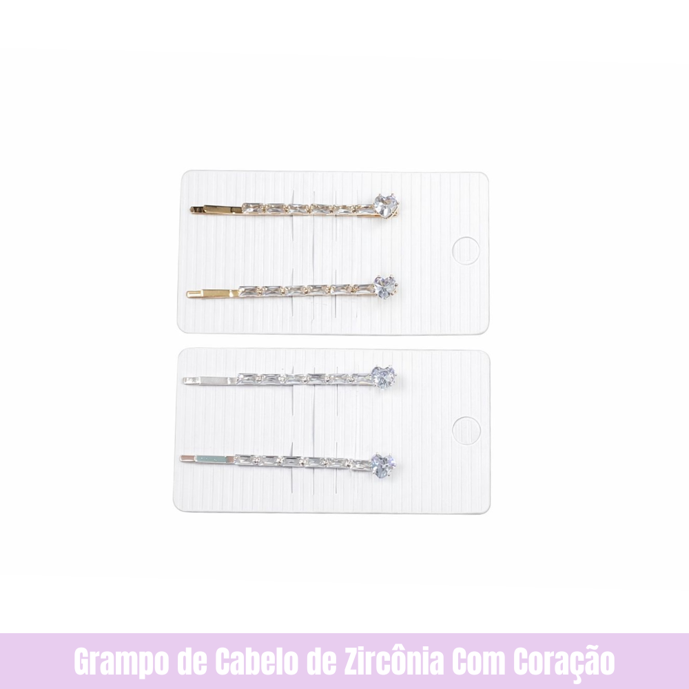 Grampo de Cabelo de Zircônia Com Coração