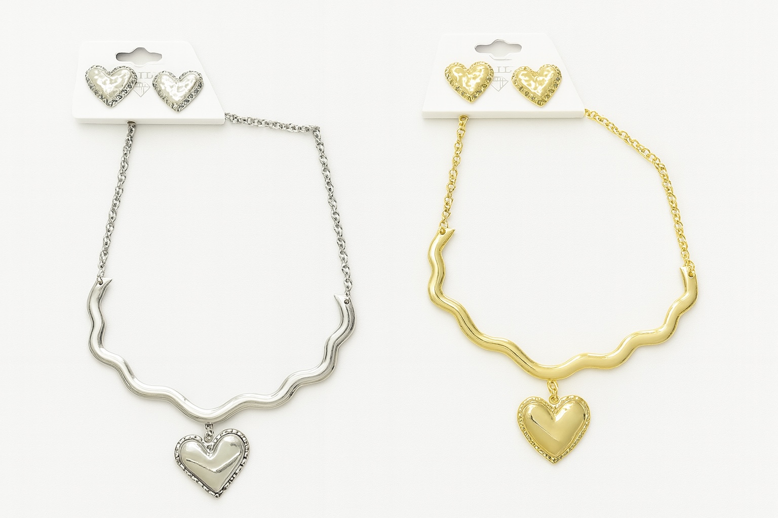 Kit Colar e Brinco Modelo 04 Coração Cores Sortidas