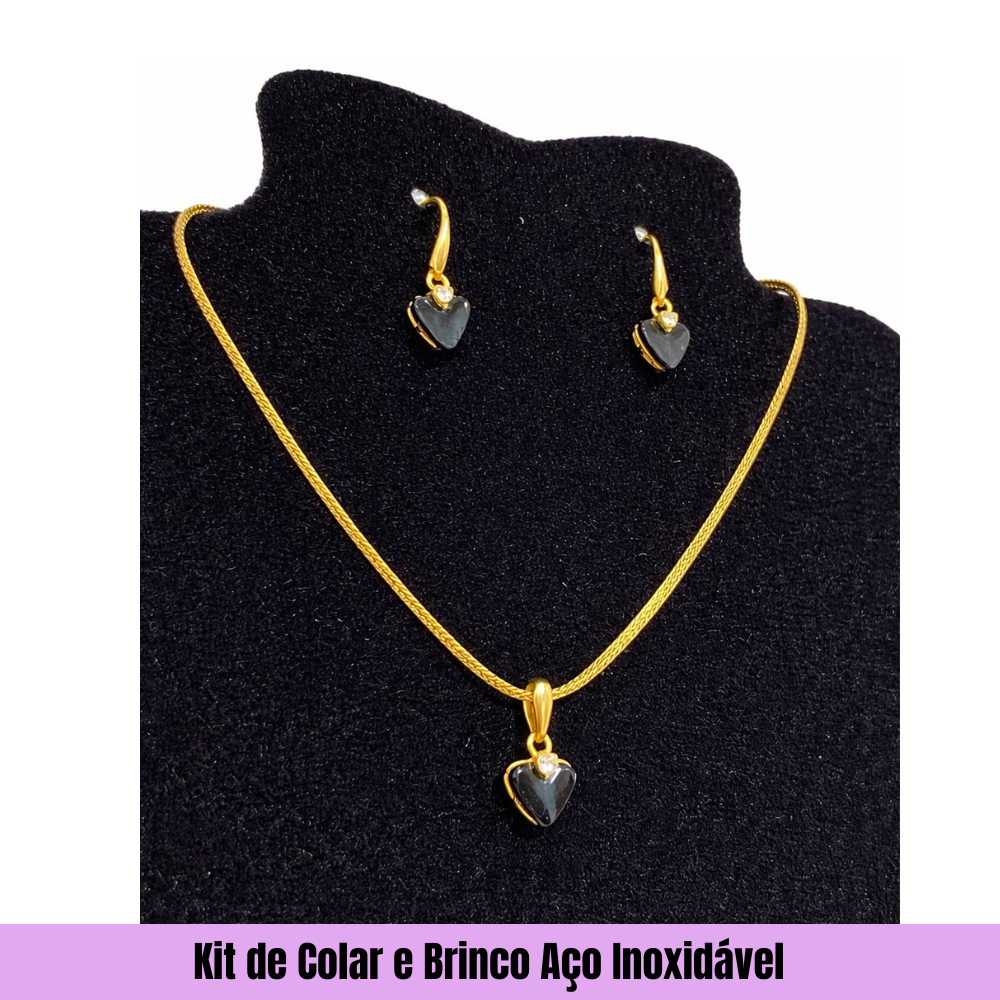 ? Kit 1: Pingente em formato de coração com pedra preta e brilho delicado, romântico e elegante.