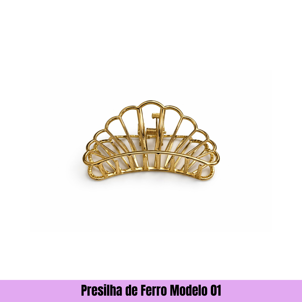 Presilhas de cabelo de ferro (metal) são acessórios duráveis e elegantes, ideais para fixar penteados com firmeza, como coques, rabo de cavalo ou semi-presos. Geralmente confeccionadas em ligas resistentes com acabamentos dourado, prata ou coloridos, conferem sofisticação e estilo moderno, sendo práticas para uso diário ou eventos formais.