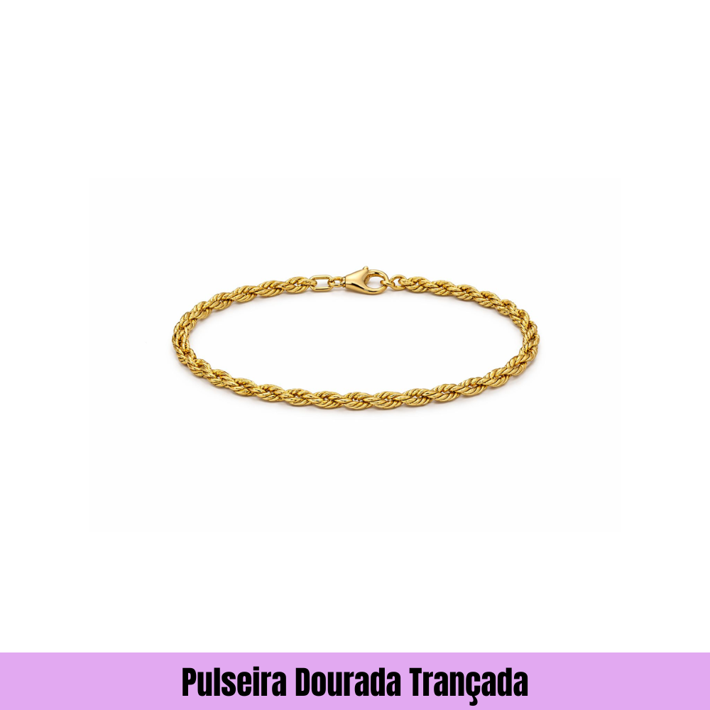 A pulseira dourada trançada é o acessório perfeito para quem busca elegância com um toque atemporal. Seu design em trama delicada valoriza o brilho da peça, proporcionando um visual sofisticado e versátil para qualquer ocasião.