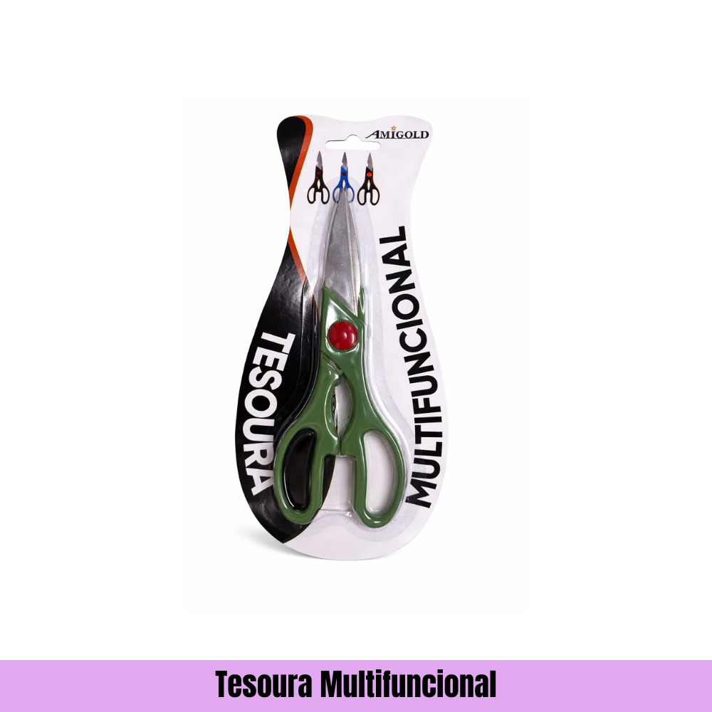A Tesoura Multifuncional Amigold é um utensílio prático e versátil, ideal para auxiliar nas atividades do dia a dia na cozinha e em diversas tarefas domésticas.