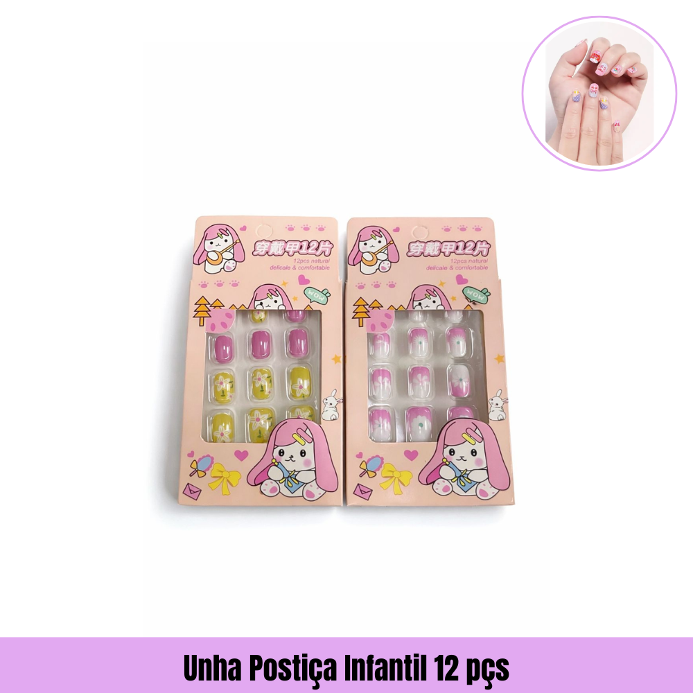 As Unhas Postiças Infantis (12pcs) são naturais, confortáveis e fáceis de aplicar. Com cores vibrantes e estampas fofinhas, deixam as mãozinhas ainda mais encantadoras.